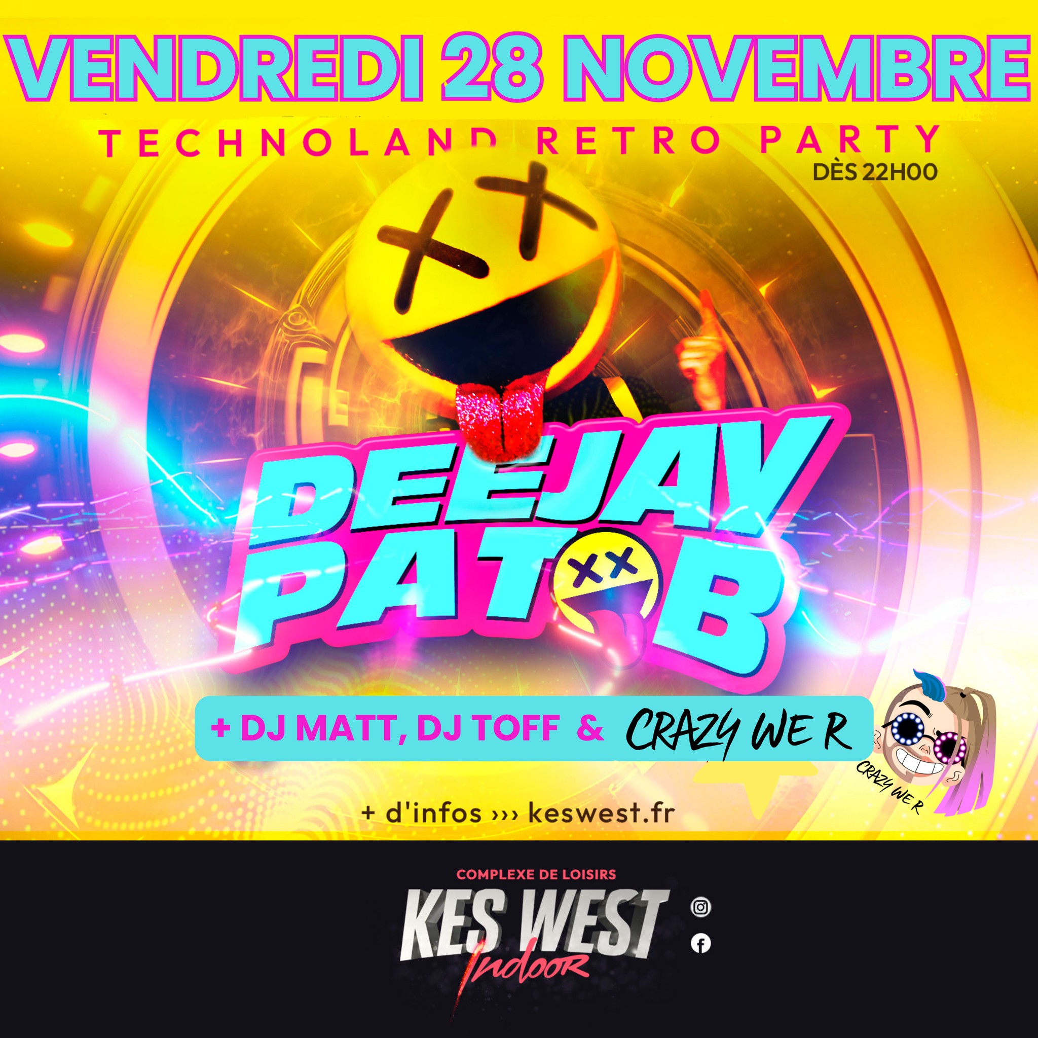 PROCHAINE EVENT KESWEST“TECHNOLAND RETRO PARTY”Vendredi 28 NOVEMBRE : 22h00/5h00Guest : “DJ PAT B”+ Le Duo CRAZY WE “R” & Dj TOFFWarm up réglé par MATT